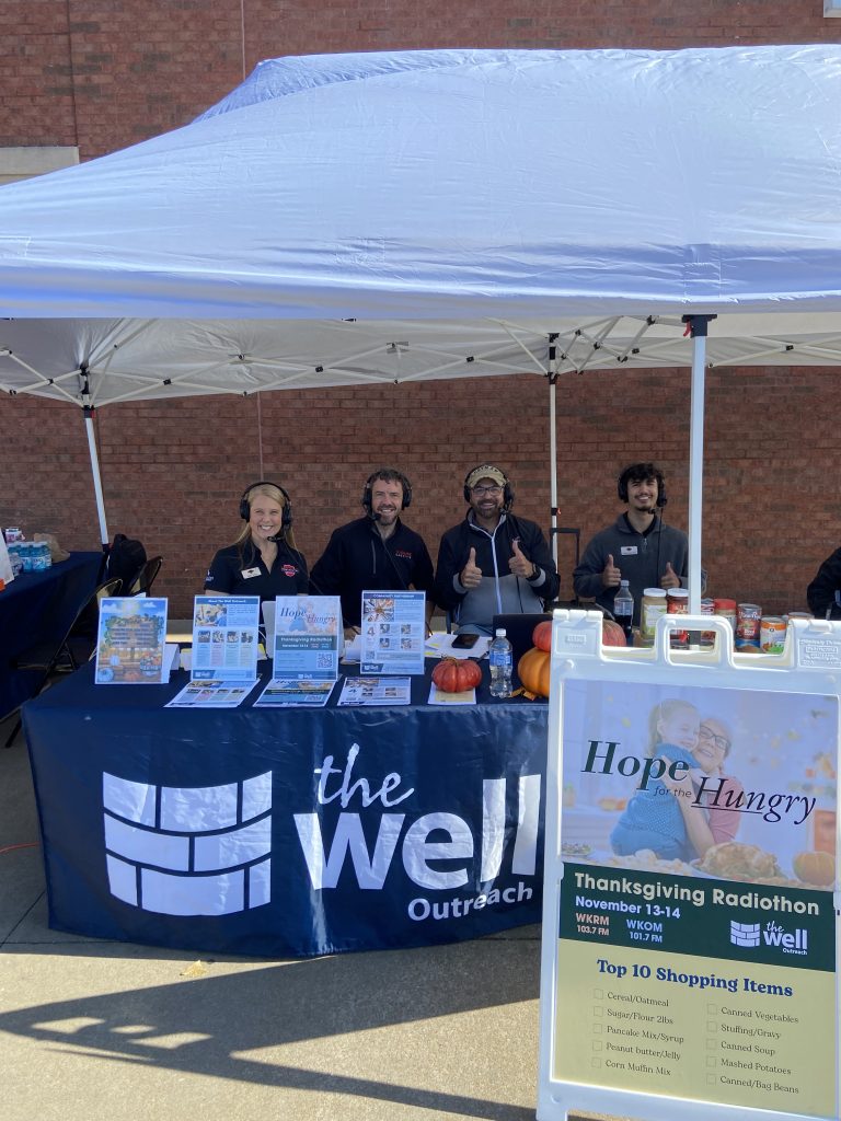 The Well Outreach, WKRM/WKOM Thanksgiving Radiothon. (L-R) Holly Reilly, Preventia Security; Paul Goldsmith, Vidare Creative; Bill Scott, Vidare Creative; Gabriel Martinez, Preventia Security